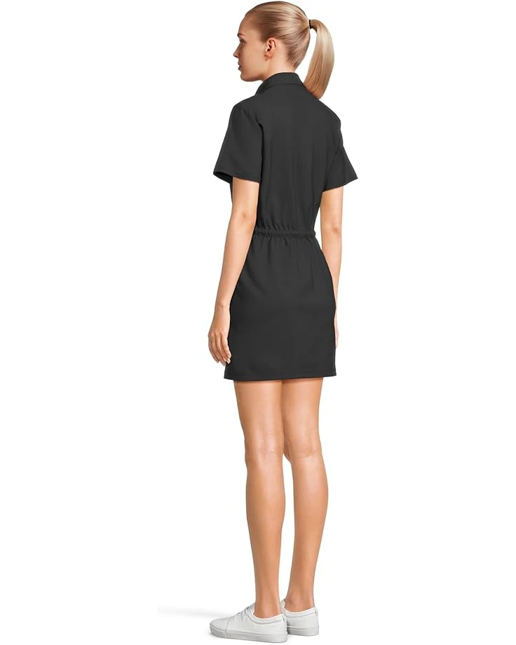 - Make a wow statement in your sporty urbane look wearing the Beyond Yoga® City Chic Dress. It features a spread collar, short sleeves, elasticized waist with adjustable drawcord, and two-way zippered front closure.