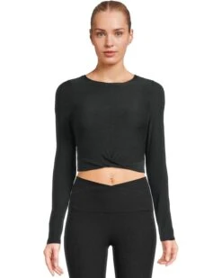 - The Beyond Yoga® Featherweight Center Stage Cropped Long Sleeve Pull Over is a new year-round essential to add to your collection. A studio-inspired (think barre- and ballet-aesthetics) long sleeve top that doesn’t mind if you skip class. Made of our super-soft and light Featherweight fabric, for year-round wear. A simple but unique front crossover offers a waist-flattering fit and dimension to your entire outfit. Uniquely created to flatter every shape, it features a crew neckline, long sleeves, and a straight hem.