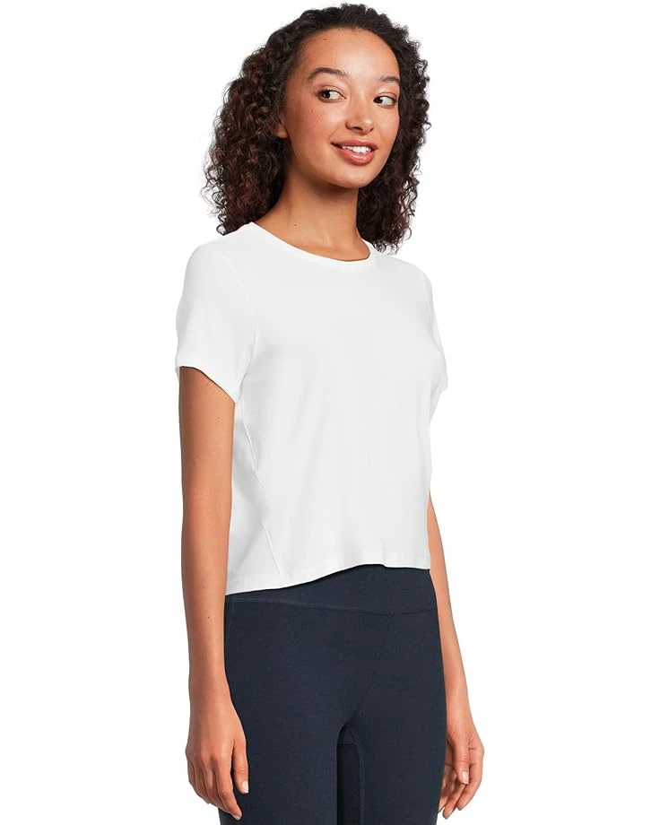 - Light as air, undeniably chic: The Beyond Yoga® Featherweight Supreme Cropped Tee redefines everyday comfort. Featuring a soft, featherlight fabric, this pull-on tee offers effortless style with a relaxed fit and short sleeves. Its design pairs perfectly with high-waisted pants or leggings for a flattering silhouette. Top of the tops. Our simple, straightforward, and completely essential cropped tee with a loose, relaxed fit for cool-without-even-trying comfort. Wear yours to work, weekend plans, and everywhere in between.