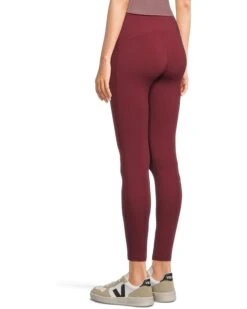 LOVE these! Sooo comfy and soft. Great workout leggings and the burgundy is a beautiful color. I’m 5’4” and they hit above my ankle. (5’4”, 147 lbs, size medium.)