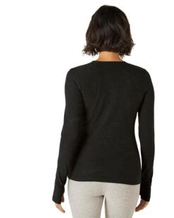 Order 1-2 sizes up — 1 size up will be fitted but you can get it over your head, and 2 sizes up will be slightly more relaxed. I LOVE this shirt. I was looking for a shirt that was fitted but not too fitted, soft and warm but not overly warm, could be layered under Cashmere and other fabrics, would look fine on it’s own if I had to strip off top layers, and would wick sweat and dry quickly. I cannot wear Merino wool next to my skin, and I have tried lots of synthetic layers (Cuddleduds, 32 Degreees, etc). The other brands hold stink and are not great at regulating my temperature at this stage in my life. These Beyond Yoga shirts are PERFECT and I’m buying more!