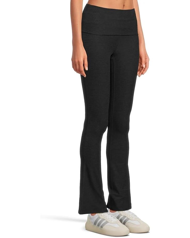 - Simple but so essential. The Beyond Yoga® Spacedye Foldover Pants are designed with a classic bootcut look, with the softness of the Spacedye fabric and a foldover waistband. They are fitted through the waist and thigh, with a slightly flared ankle. Designed to uniquely flatter every shape, these wide-leg pants are the only active yoga pants you can wear for work or play, they are the perfect blend of fashion and function, and the one piece you’ll wear again and again.