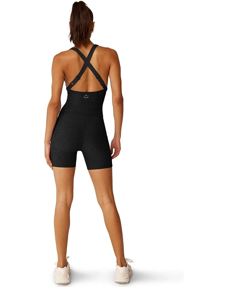 - Offering exceptional comfort and support, the Beyond Yoga® Spacedye Get Up And Go Pocket Biker Jumpsuit is a must-have for all your favorite activities like hiking, biking, hitting the beach or the court. The jumpsuit features an athletic fit, soft scoop neckline, elastic back straps with adjustable rings & sliders, self side pockets, and a short-length silhouette.
