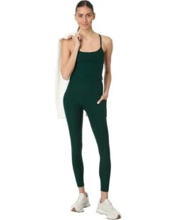 I love Beyond Yoga leggings and have them in other colors but ended up returning the forest glade ones. I like the color a lot (although it’s more muted than I expected from the picture) but the contrast stitching with this particular color made them look a little too much like shapewear on my relatively stumpy legs, in my opinion. I do prefer the look of the ones without pockets (it’s just a cleaner line) but they are SO handy to have, but I don’t mind the stitching as much on the dusty violet or darkest night colors. It stands out more on these – which I actually like aesthetically when it’s not on my body. I’m 5’5″ but have short legs (30 in inseams are a smidge long for jeans) and the midi length hits exactly at my ankle, where I want them.