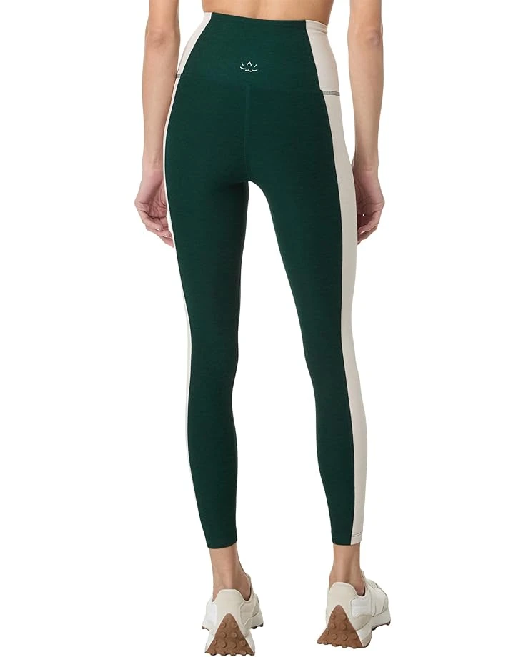 - Experience the softness and freedom of movement with these comfortable and stretchable Beyond Yoga® Spacedye Vitality Color-Block High Waisted Midi Leggings. These pull-on leggings feature color-block side panel detailing and wide elasticized waistband with brand logo at the back.