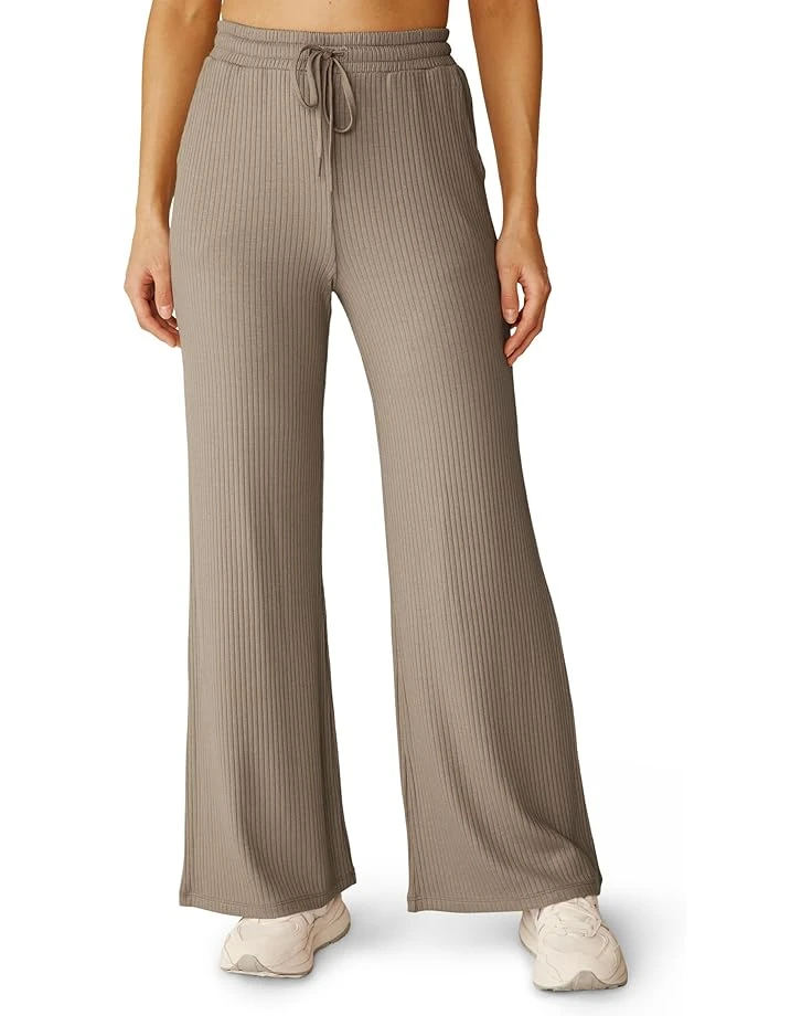 - Stay comfortable on every journey and every road you take wearing Beyond Yoga® Well Traveled Wide Leg Pants that feature a mid-rise elasticated waistband with drawcord, two slant pockets on the sides, and a wide-leg silhouette. Crafted from a knit ribbed fabric, the pants offer a perfectly elevated drape, a relaxed fit, and come in a regular ankle length.