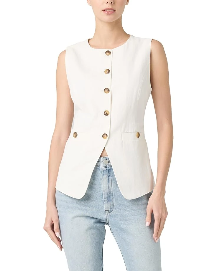- Add a touch of flair to your look choosing the Blank NYCâ„¢ Cloud Burst vest! With a crew neckline, sleeveless style, and buttoned front closure, this vest is the perfect layering piece for any season. Stay on-trend and comfortable with this stylish addition to your closet.