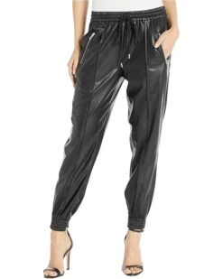 3 reviews for Blank NYC Faux Leather Drawstring Jogger w/ Zipper Pockets in Running Wild | Pants