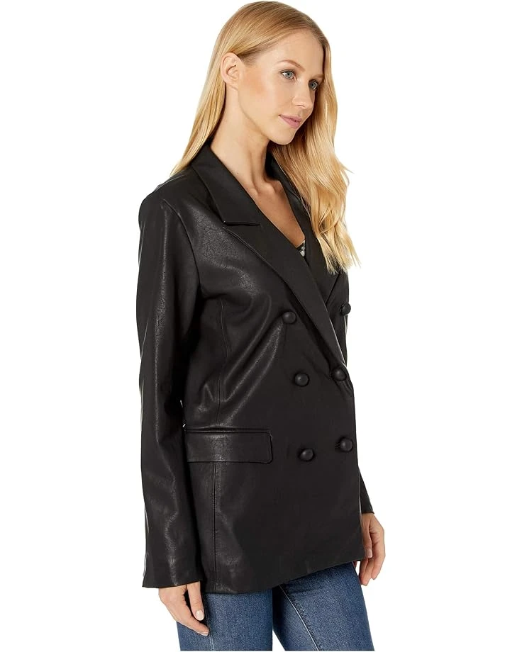 - Enter the room in total luxury with this [BLANKNYC]â„¢ Faux Leather Long Double Breasted Blazer in Carbon. The double-breasted single-button closure at the front adds a sophisticated feel to this jacket.