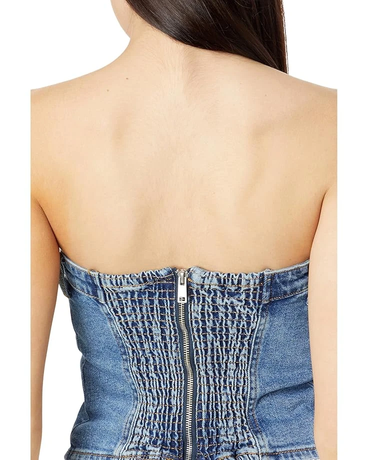 - Flaunt a subtle yet stylish look wearing the Blank NYCâ„¢ Own It Denim Bustier in Blue Top that comes in a flattering silhouette. The top features a sleeveless design with a sweetheart neckline, back zipper closure, smocking details on the back, and a fitted construction.