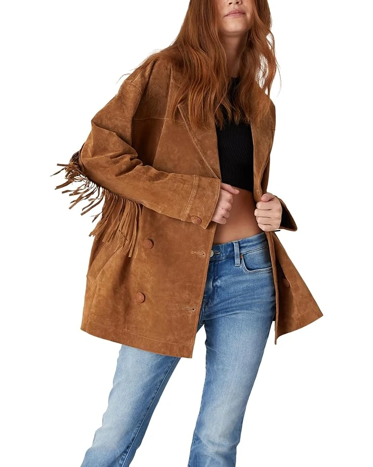 Blank NYC Real Suede Double Breasted Fringe Coat | Coats & Outerwear