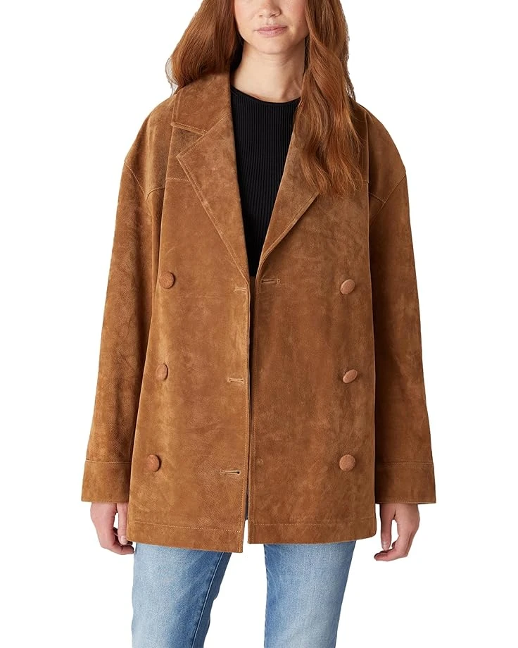 - Add a touch of edge to any outfit with this stylish Blank NYCâ„¢ Real Suede Double Breasted Fringe Coat. Crafted from buttery-soft suede and designed with an impeccable fit, it’s the ultimate piece for effortless cool. Featuring long sleeves, button front closure, fringe detailing at the back, and two side hand pockets.