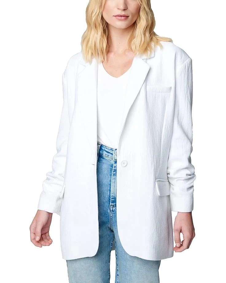 - Layer your look wearing the Blank NYCâ„¢ White Oversized Single Button Blazer in So Ice for an effortless look.
